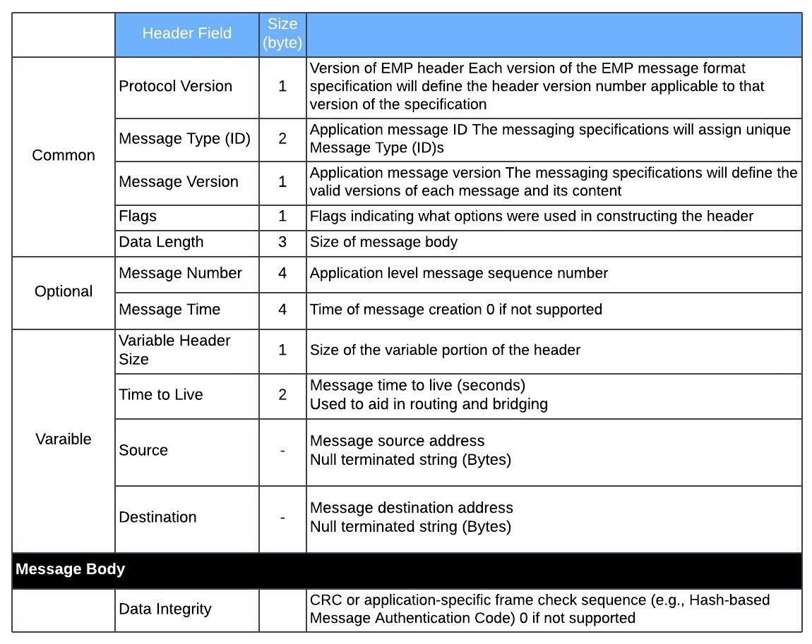 - EMP (Edge Messaging Protoco) General Packet Structure